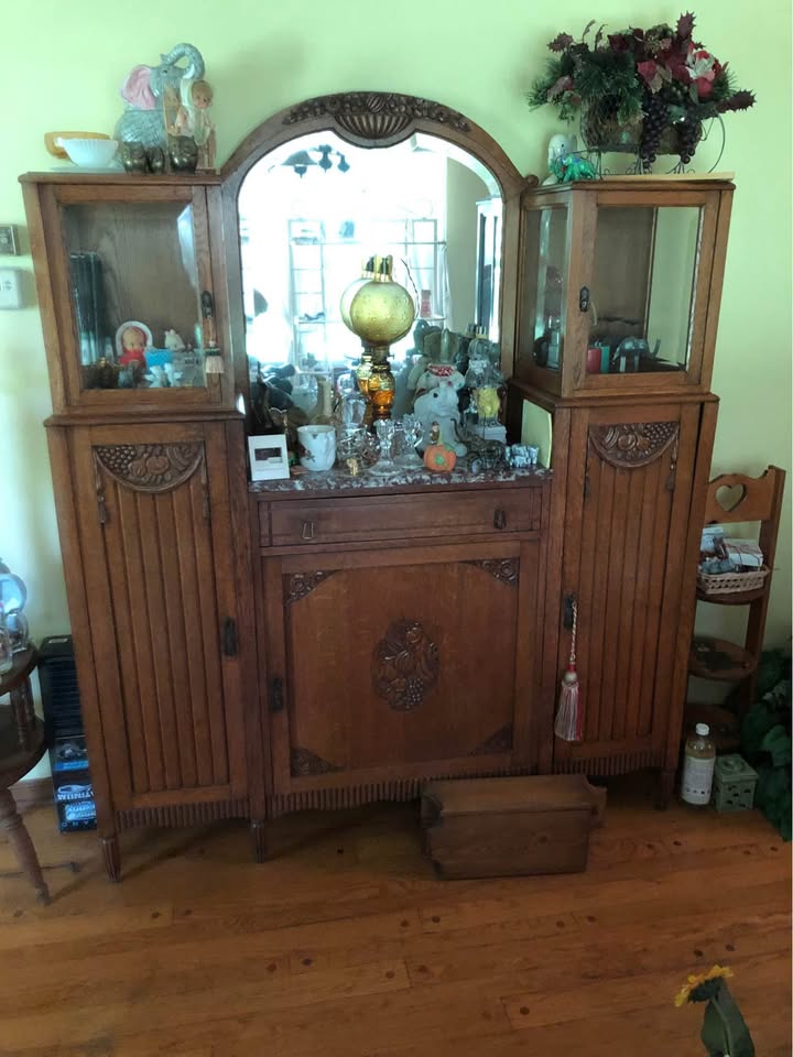 1st picture is antique cabinet, next is wardrobe, a chair & then a 3 piece sofa set but only had room to show 2 pieces.