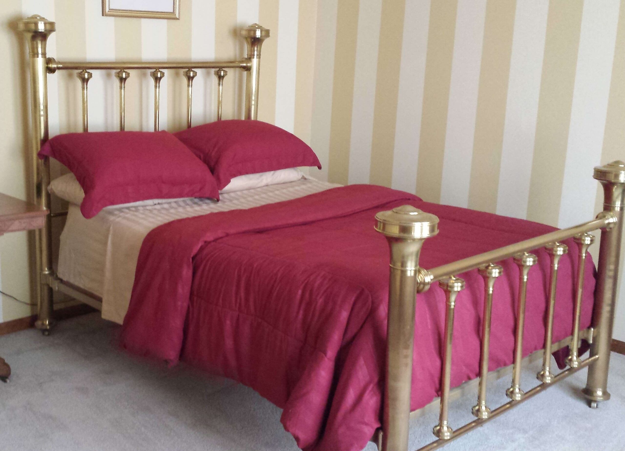Double size brass bed. Width 58″, Height 59″ head piece, 39″ foot piece