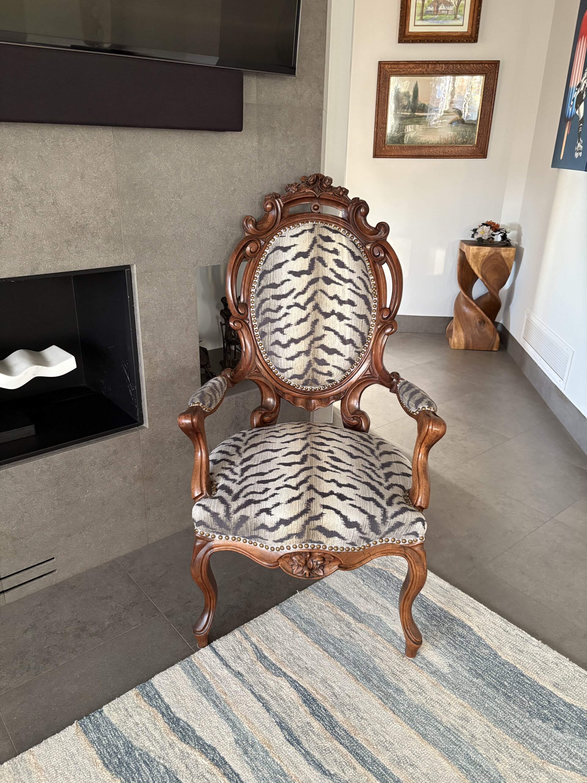 This is a beautiful chair at least 100 ya old. It can be uses as an art piece in the right situation