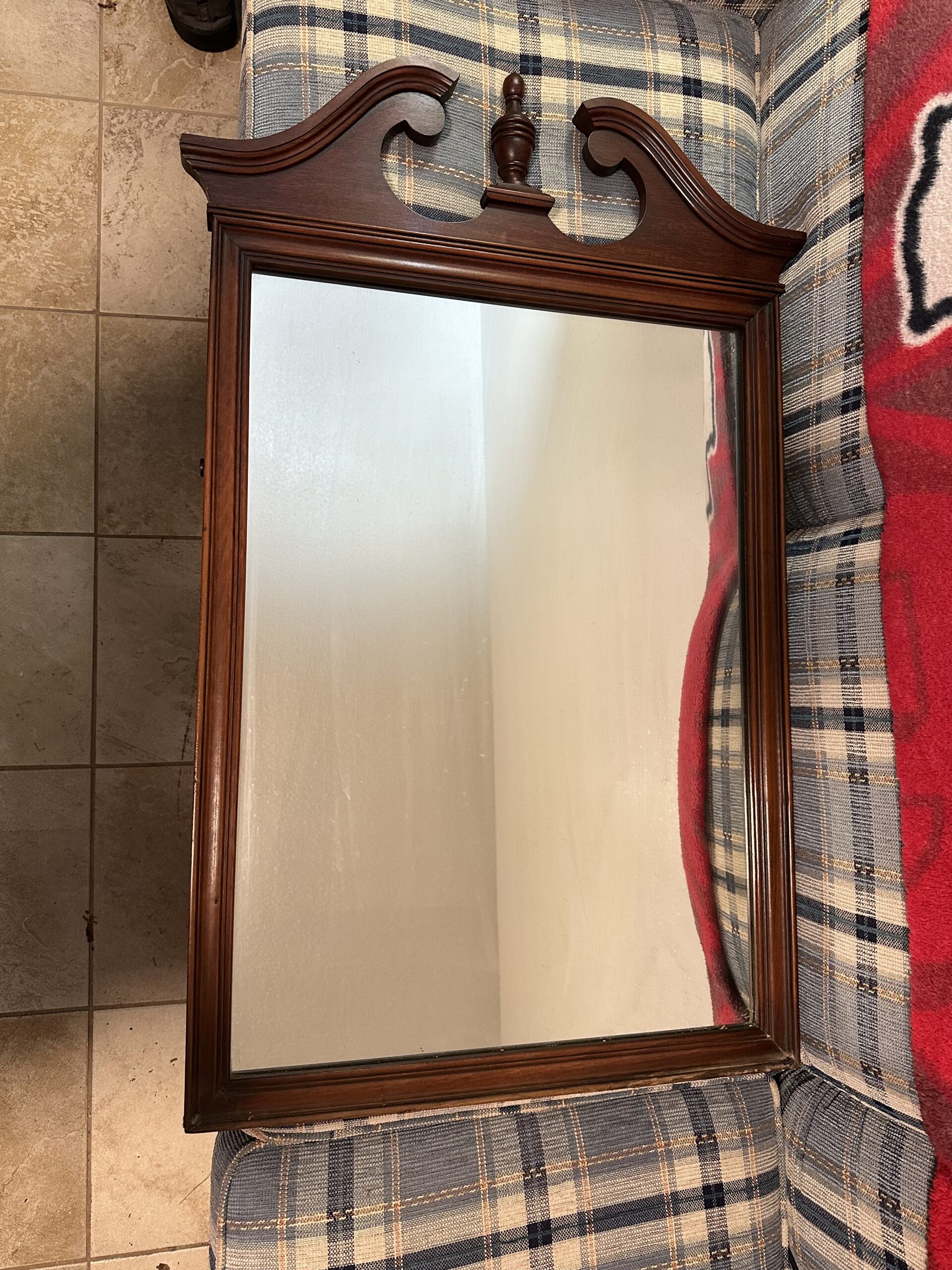 Solid wood mirror for bedroom dresser. I would approximate it’s around 80 years old.