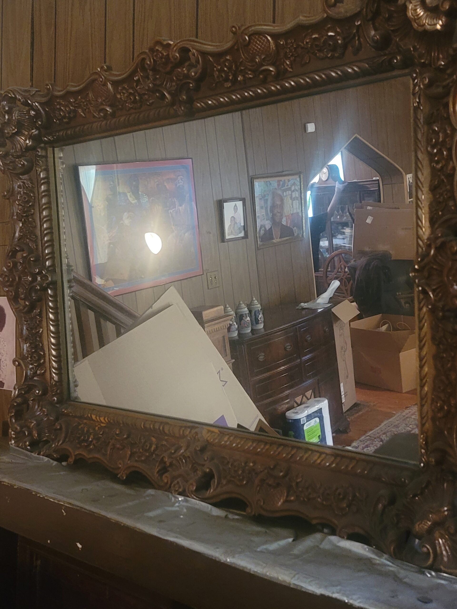 Clock will move and play a sound when batteries are installed. Mirror is nice still in good condition