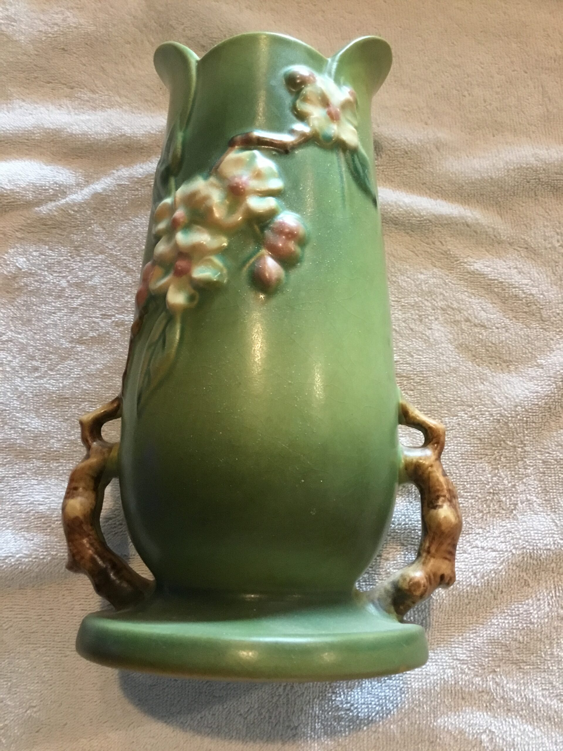 Green magnolia vase. Brown magnolia candle holders. Green sponged tumbler and 6 ounce custard bowl.