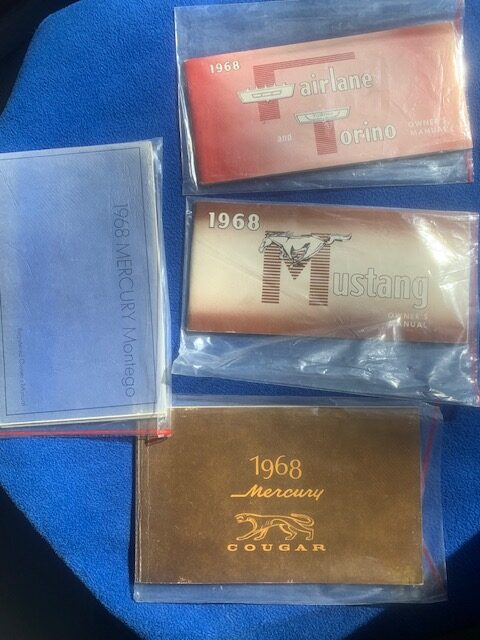 – Owner’s manuals for 1968 Ford Fairlane & Mustang and 1968 Mercury Cougar & Montego